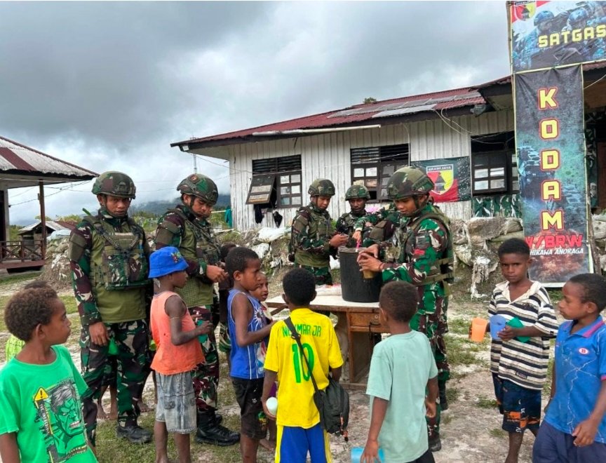 infonesianews.my.id Pada 7 November 2025, Satuan Tugas (Satgas) Yonif 521/DY melaksanakan program extra fooding sebagai bentuk kepedulian TNI terhadap masyarakat di Distrik Apalapsili, Kabupaten Yalimo, Papua Pegunungan.