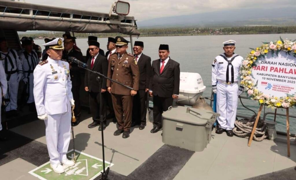 Banyuwangi, 10 November 2025 – Di tengah debur ombak Selat Bali yang menyimpan sejarah perjuangan, semangat kepahlawanan kembali berkobar di Banyuwangi. Peringatan Hari Pahlawan tahun ini tidak hanya menjadi momen untuk mengenang jasa para pahlawan, tetapi juga sebagai momentum untuk membangkitkan semangat membangun daerah melalui aksi nyata. Salah satu kegiatan utama yang menyentuh hati adalah upacara tabur bunga di Selat Bali, yang dilaksanakan di atas Kapal Angkatan Laut (KAL) Sembulungan II-5-42.